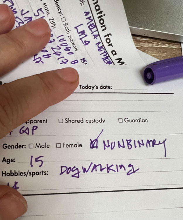 first crush in middle-school, I made sure to ask if the person was a girl, boy, trans or non-binary. I saw the relief on my child's face when I said "girl" and she said "that one." I ask my kids their preferred pronouns, as well as their permission before sharing their pronouns outside of our immediate family.