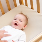 - Bedding for the crib, including a flannel-backed, waterproof mattress cover (which is cooler and more comfortable for your baby than plain plastic or rubber covers), and tight fitted sheets. Never use infant cushions that have soft fabric coverings and are loosely filled with plastic foam beads or pellets. Remove all pillows, quilts, comforters, sheepskins, and other pillow like soft products. Remember that the safest position for a baby to sleep in is on her back.