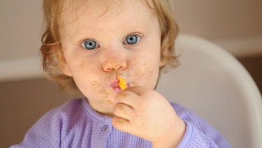 Be sure the food is cool enough to prevent mouth burns. Test the temperature yourself, because he or she will dig in without considering the heat.