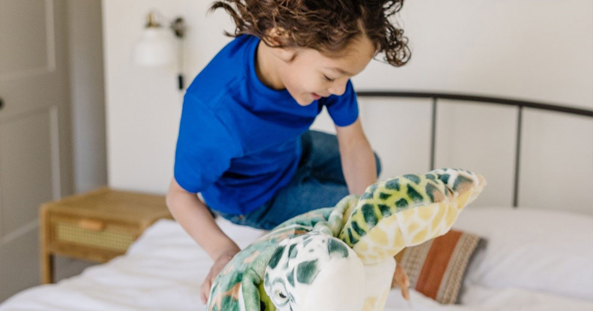 Make good use of old pillows (or ones you don’t mind kids stepping on) by playing "the floor is lava," for example. Or, build a good, old-fashioned pillow fort. Some kids love the feeling of pressure they get while reading leaning against pillows; others will want to destroy the fort and rebuild it over and over; while others may pretend the pillows are mountains and caves for their figurines and cars.