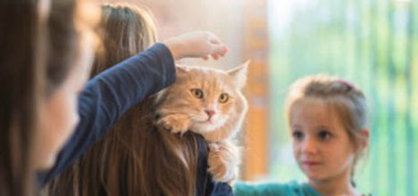 Remember hand hygiene. Teach your child not to touch her face when playing with or petting the cat, and to wash her hands right afterward.