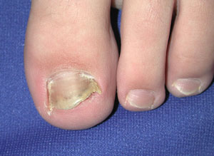 Tinea unguium or onychomycosis (nail fungus): This nail infection causes the nails to get thick and turn yellow brown. This infection is more common on the toenails.