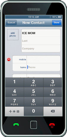 - In the name line, enter ICE, followed by the first name of your emergency point person (ie, ICE Mark).
