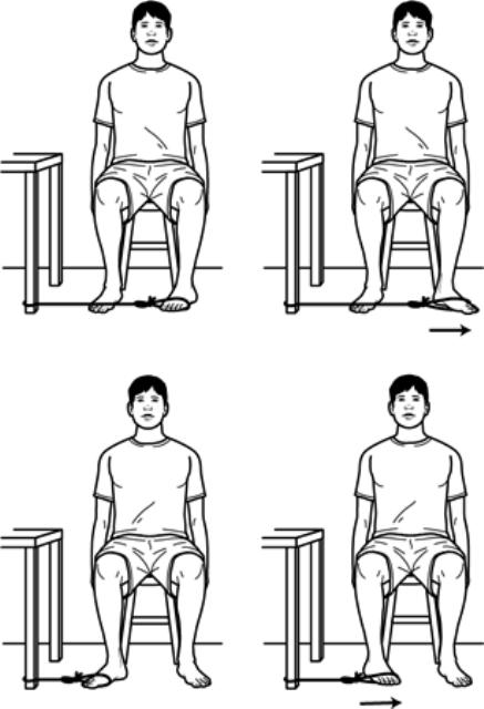 - Repeat steps 1 through 3 with right forefoot pulling the tubing to the right.