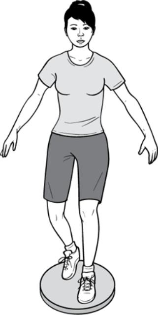 Exercises to restore proprioception are performed on a balance board, a wobble board, or a mini trampoline, or simply by standing on one leg while playing catch with a ball or doing some other distracting activity.