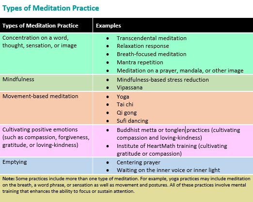 Meditative practices have been used since ancient times to improve health and well-being. But, just as an athlete may do different exercises, people who practice meditation often use different types.