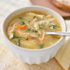 • Herby Chicken Soup: Add 1 teaspoon dried marjoram leaves (or 1 tablespoon chopped fresh), 1 teaspoon dried rosemary (or 1 tablespoon chopped fresh), and ¼ teaspoon dried thyme (or 1 teaspoon chopped fresh). If you’re using dried herbs, add them when you cook the veggies. If you’re using fresh herbs, stir them in right before serving the soup.
