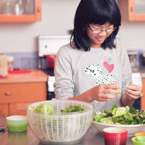 - Put the lettuce, spinach, cucumber, green beans, celery, avocado and grapes in the salad bowl and toss well.