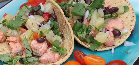 Recipe: Grilled Salmon Tacos With Mango Black Bean Salsa