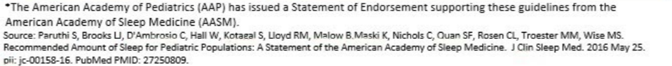 The American Academy of Pediatrics (AAP) supports the AASM guidelines and encourages parents to make sure their children develop good sleep habits right from the start.