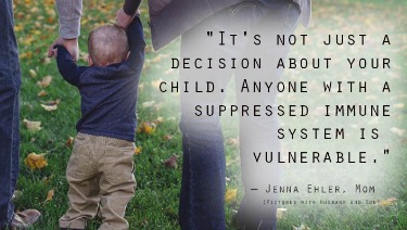"When you make this choice, it affects my child," said Jenna, recalling her husband's response. "It's not just a decision about your child. Anyone with a suppressed immune system is vulnerable."