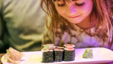 • Consider starting with vegetarian options to ensure that your child enjoys the other ingredients in sushi. Raw fish and shellfish in sushi may carry bacteria or toxins, but data reported to the Centers for Disease Control and Prevention (CDC) found it rarely causes illness. For example, sushi accounted for 0.3% of all food-borne illnesses in the U.S. between 1998 and 2015. Eating other raw or undercooked animal protein sources—including beef and poultry products—creates a similar if not greater risks for illness. In places, such as Japan, where sushi is a main part of the diet, parents often wait until children are 2 ½ to 3 years old to introduce it, but in some cases, they wait until age 5 or later.
