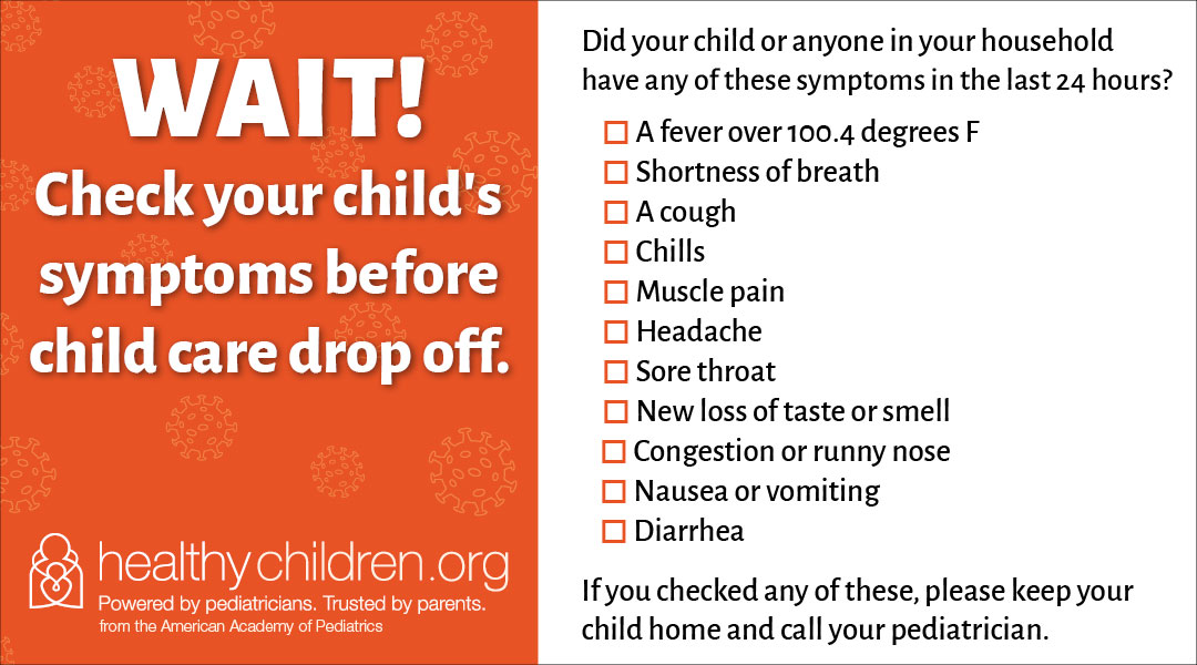 You'll want to be comfortable with how the center plans to clean and disinfect, screen children and staff for symptoms, and handle illness: