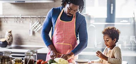 Using recipes you find (such as the Tofu and Black Bean Tacos with Creamy Cilantro Slaw included below), you can involve kids in meal preparation and cooking.