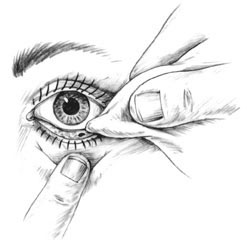 • Pull the lower eyelid out by gently pulling down the skin above the cheekbone.