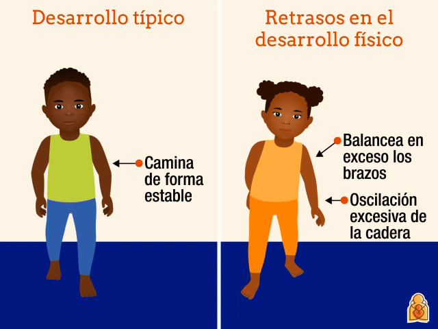 retrasos del desarrollo físico, también conocidos como retrasos de la motricidad gruesa.