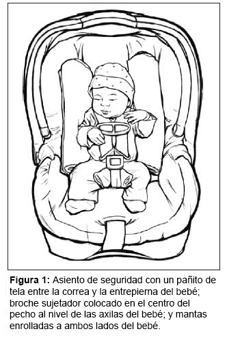 Figura 4 de Bull MJ, Engle WA, Comité de Prevención de Lesiones, Violencia y Envenenamiento (Committee on Injury, Violence, and Poison Prevention) y el Comité de Fetos y Recién Nacidos (Committee on Fetus and Newborn) de la American Academy of Pediatrics. Transporte seguro de bebés prematuros y bebés con bajo peso al nacer cuando son dados de alta del hospital. Pediatrics. 2009;123(5):1424-1429.